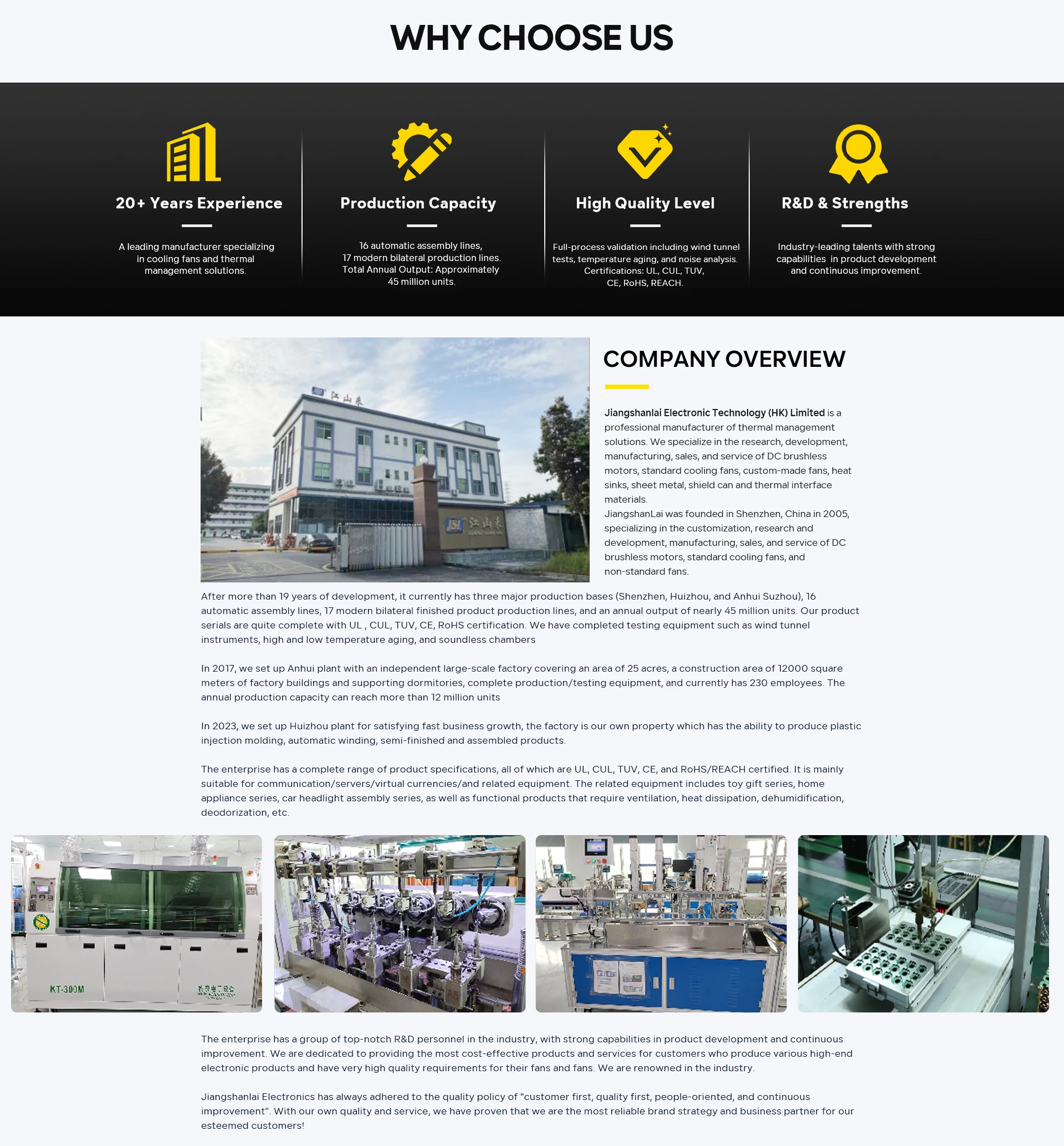 1.Professionally designing and manufacturing cooling fans for 20 years.